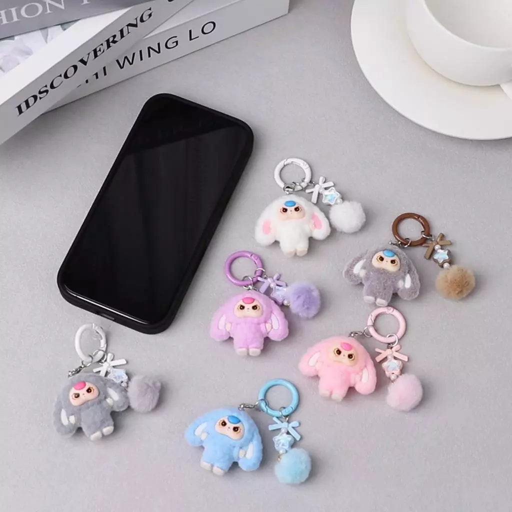 จี้ห้อยโทรศัพท์ตุ๊กตา 3D Flocking พร้อมพวงกุญแจห้อยกระเป๋าเป้สะพายหลังสุดน่ารัก